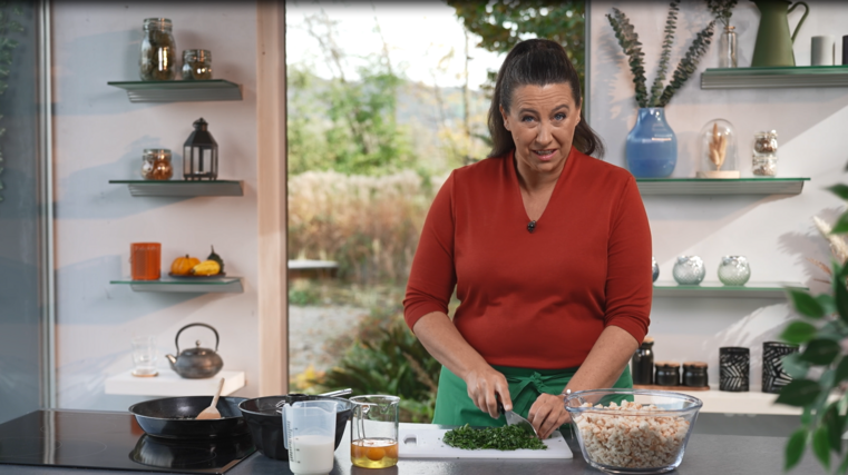 Die Zwiebel fein hacken und mit der Butter in einer Pfanne anbraten. Die Petersilie klein schneiden.