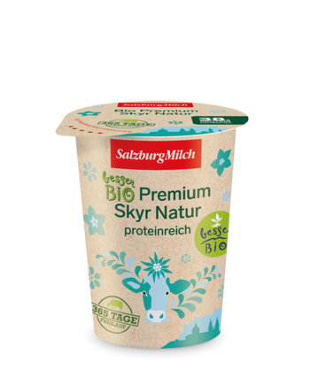 Den Skyr unter die erhitzte Masse heben und in eine gefrierfeste Form füllen.