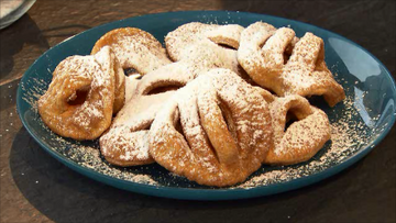 Sauerrahm, Schlagobers, Rum, Salz, Backpulver mit 3/4 vom Mehl weiterrühren.
