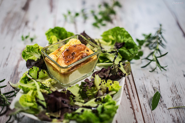 Auf Tellern Salat anrichten. Mit etwas Balsamico Reduktion, sowie Olivenöl, Salz und Pfeffer marinieren. Die Soufflés in die Mitte stellen und noch warm servieren.