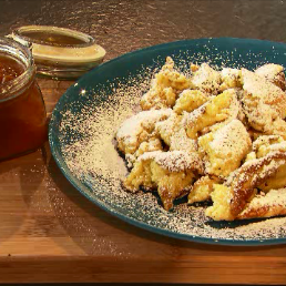 Auf Teller anrichten, anzuckern und mit Kompott oder Zwetschken- oder Marillenröster servieren.