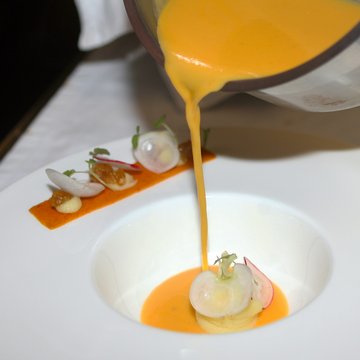 Mit einem Stabmixer mixen, Schlagobers beimengen und mit etwas Salz und Pfeffer verfeinern und servieren.