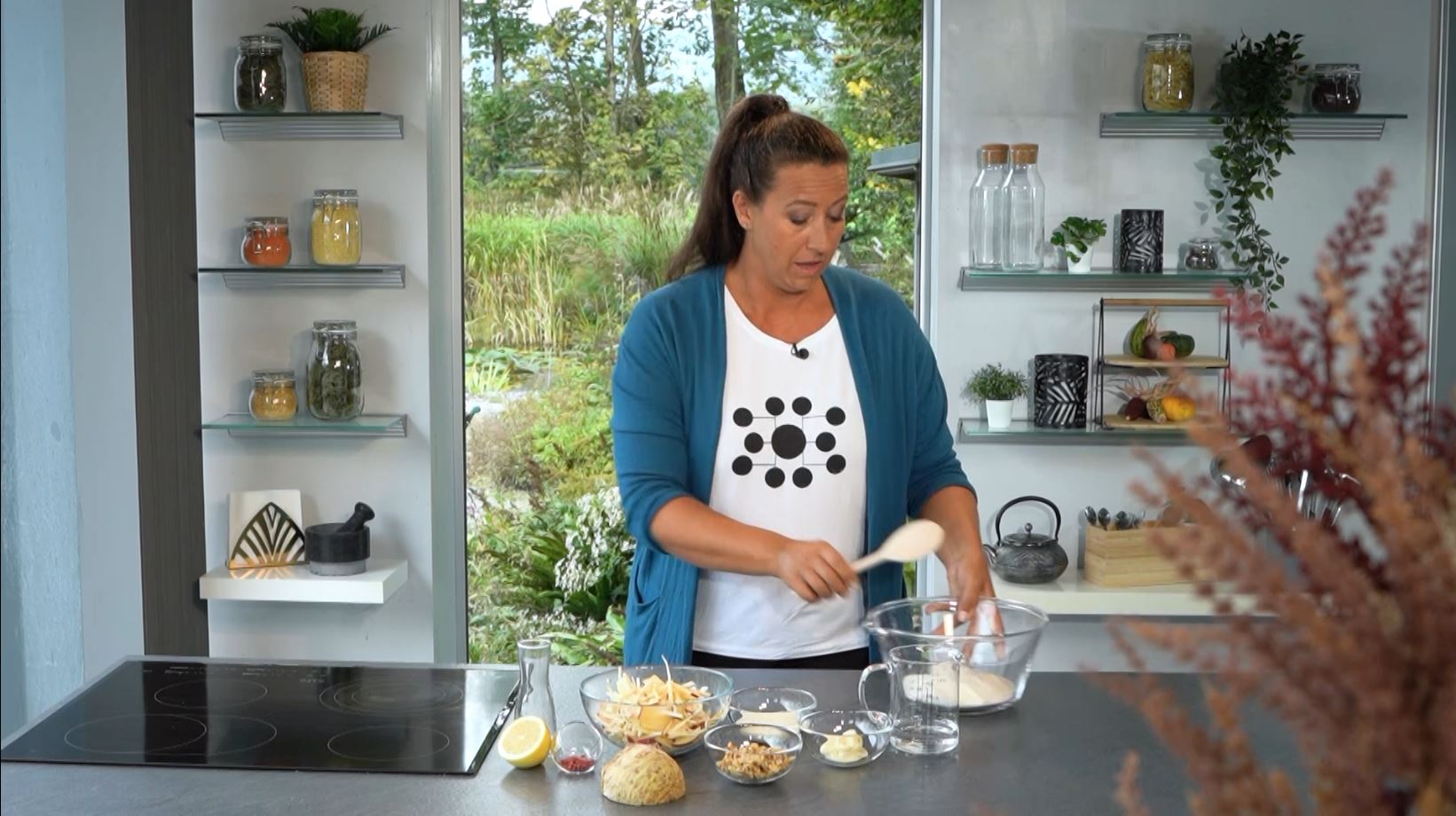 Sellerie und Apfel dünn nudelig schneiden. Walnüsse grob hacken. Die Zutaten mit Mayonaise und Joghurt mischen und mit Salz, rosa Pfeffer und etwas Zitronensaft abschmecken.
