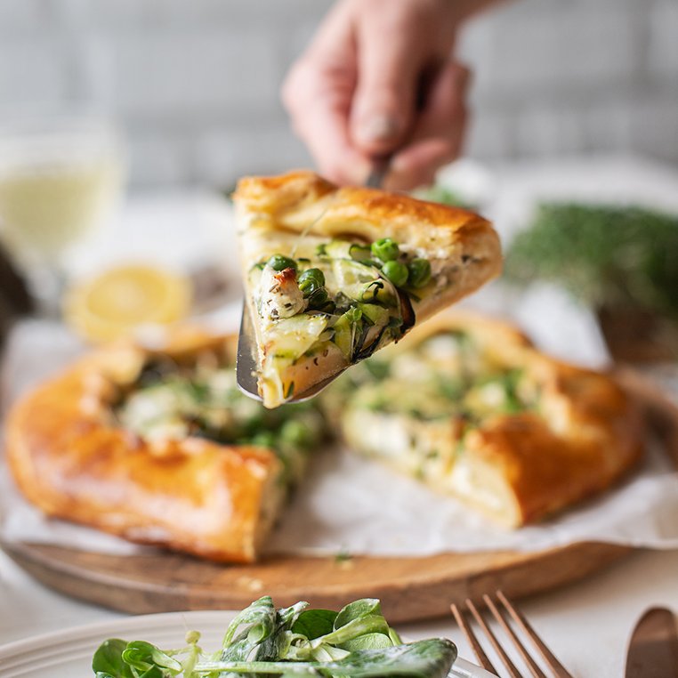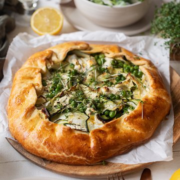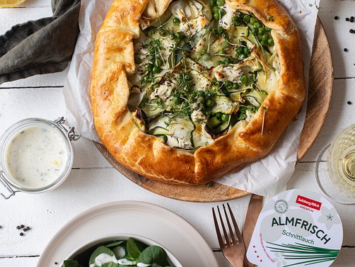 Für das Dressing alle Zutaten pürieren und mit einem grünen Salat zur Galette servieren.