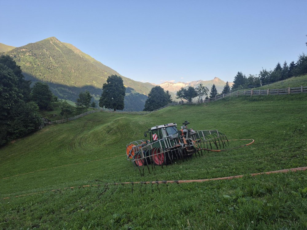 Das stammt von einer artenreichen Magerwiese auf der Alm, die nur einmal im Jahr gemäht wird. Das dort gewonnene Kräuterheu ist wertvoll für die Tiergesundheit und wird vor allem an kranke oder frisch gekalbte Tiere verfüttert. Siloballen versuchen wir weitgehend zu vermeiden, indem wir unsere alten Tiefsilos wieder nutzbar gemacht haben. So sparen wir Folienmüll und nutzen bestehende Infrastruktur.