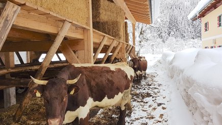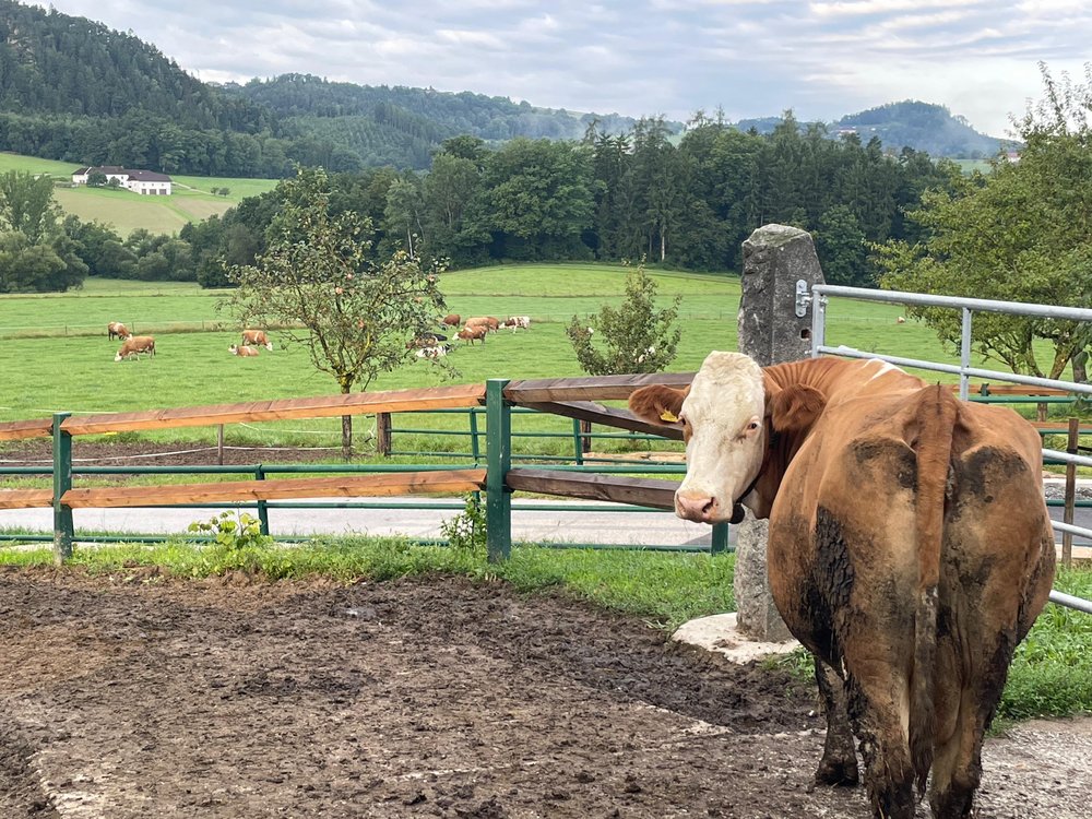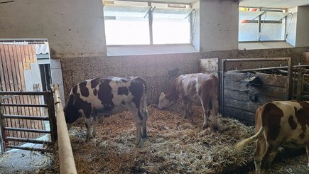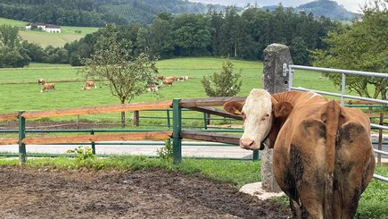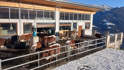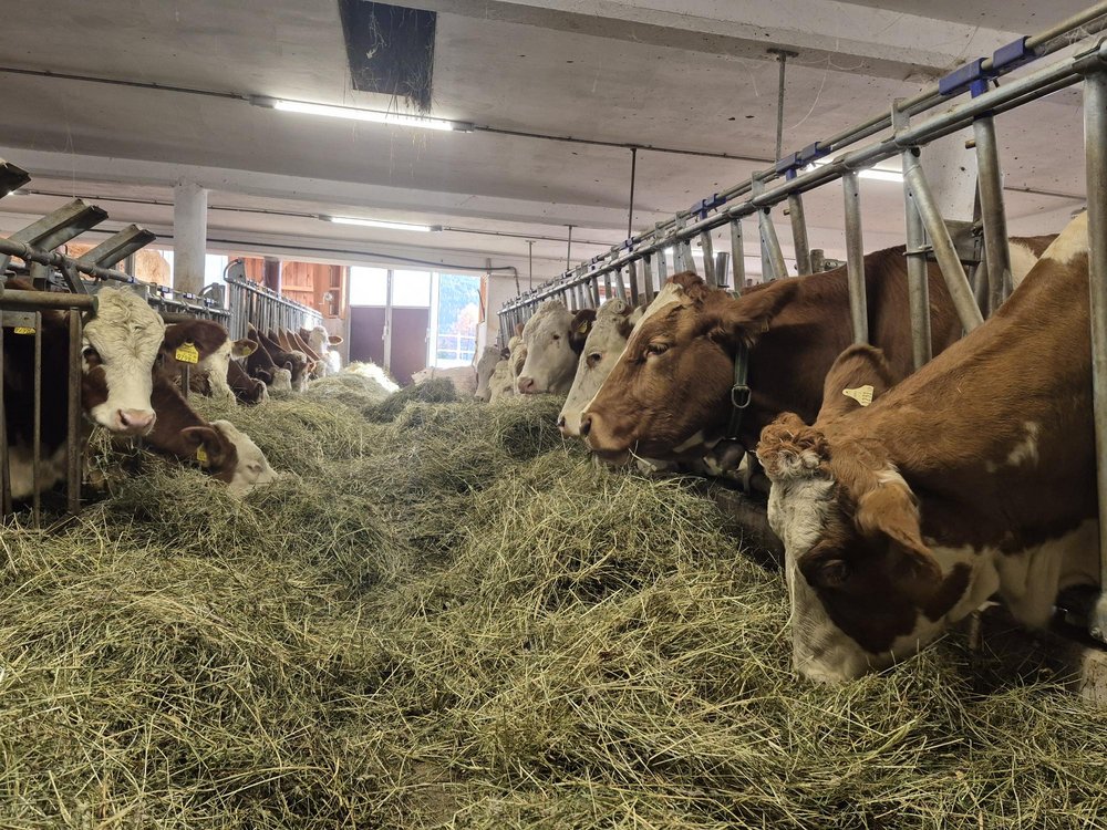 Tierwohl beginnt bei uns vom ersten Lebenstag an. Unsere Kälber wachsen in weichem Tiefstreu im Offenfront mit Auslauf auf, sie werden vier Monate lang mit Milch getränkt und haben jederzeit Zugang zu Heu und frischem Wasser. Die Kalbinnen leben im luftigen Liegeboxenlaufstall und im Sommer geht es für sie auf die Alm. Unsere Kühe genießen großzügige Maxiboxen mit Komfortbügeln, werden stressfrei über den Fütterungsroboter versorgt und verbringen den Sommer auf der Weide.