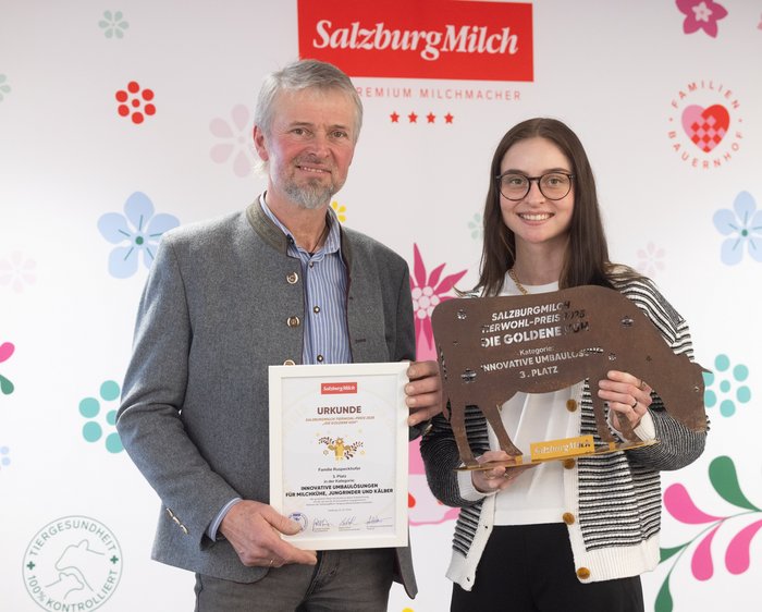 Am Daxerhof in Strasswalchen ist Nachhaltigkeit kein Trend, sondern seit Generationen gelebte Praxis. Isabella und Lukas Übertsberger bewirtschaften ihren Bio-Heumilchbetrieb mit dem klaren Ziel, ökologisch, wirtschaftlich und sozial zukunftsfähig zu bleiben. Der Familienbetrieb verbindet dabei bewusst Tradition mit moderner Technik – immer mit Blick auf Tierwohl und Ressourcenschonung. Auf dem Hof leben rund 90 Milchkühe und etwa 40 Stück Jungvieh. Bewirtschaftet werden 90 Hektar Dauergrünland sowie fünf Hektar Wald. Die Eltern der Betriebsführerin helfen noch fleißig mit und auch die nächste Generation wächst bereits mit der Landwirtschaft auf.