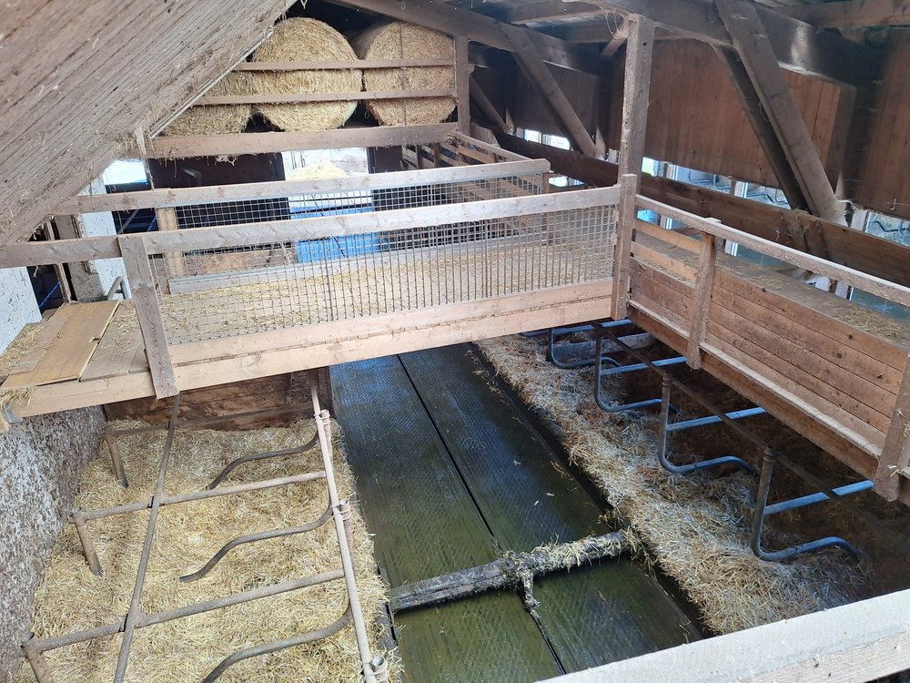 Zur Fütterung unserer Kühe verwenden wir ausschließlich kraftfutterfreies Grundfutter vom eigenen Hof. Die Kälber werden bei uns in einer Gruppenbox gehalten und ad libitum gefüttert. Unsere Laufstall beherbergt aktuell 21 Kühe, dieser wurde 2017 mit Holz aus dem eigenen Wald errichtet und verfügt über eigene Liegeboxen. Die Rinder fressen im Stallgebäude und schlafen und trinken im Freien. Damit wir mit dem Wind keine Probleme haben, ist die Liegeboxenhalle zwischen Haus und bestehendem Stallgebäude gebaut worden. Rund um die Liegeboxen befindet sich der Auslauf. In unserem Stall findet man Vulkangesteinsmehl und effektive Mikroorganismen, beides wird der Gülle hinzugegeben.