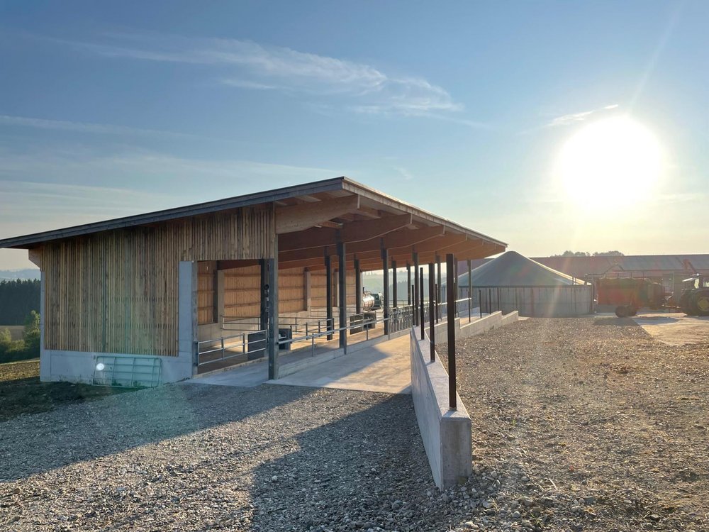 Wir haben einen großen Hoch-Silo aus Holz aufgestellt und diesen mit Photovoltaikplatten verkleidet. Dadurch entfallen jetzt Investitionen in Wickeldienste und auch die daraus resultierenden Müllberge an Folien. Durch die Installation der PV-Anlage inklusive Speichermöglichkeit können wir uns jetzt fast ausschließlich selbst mit Strom versorgen. Um die Gülle maschinell zu verteilen, haben wir eine entsprechende Gülle-Verschlauchung mit bodennaher Ausbringung investiert. All diese Maßnahmen haben unseren Alltag deutlich erleichtert. Wir sparen viel Arbeitszeit, sind unabhängiger und können uns fast selbst mit Strom versorgen. Gleichzeitig profitieren unsere Tiere enorm vom neuen Stallklima und der ruhigen Umgebung. Am Ende genießen wir alle – Mensch und Tier – die Arbeit im neuen Stall, und genau das zeigt uns, dass wir unseren Betrieb zukunftsfit aufgestellt haben.