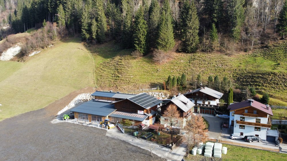 Wie legen sehr viel Wert darauf möglichst energieeffizient zu arbeiten. Unser gesamte Wärmebedarf für Heizung, Warmwasser und Heutrocknung wird von unseren Hackschnitzelöfen und ausschließlich eigenem Hackgut aus unserem Wald gedeckt. Und die Stromversorgung wird zu über 80 Prozent von unserer 36kw PV-Anlage mit 75kw Stromspeicher betrieben.