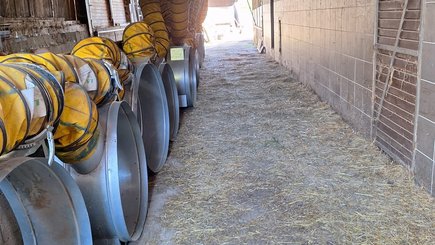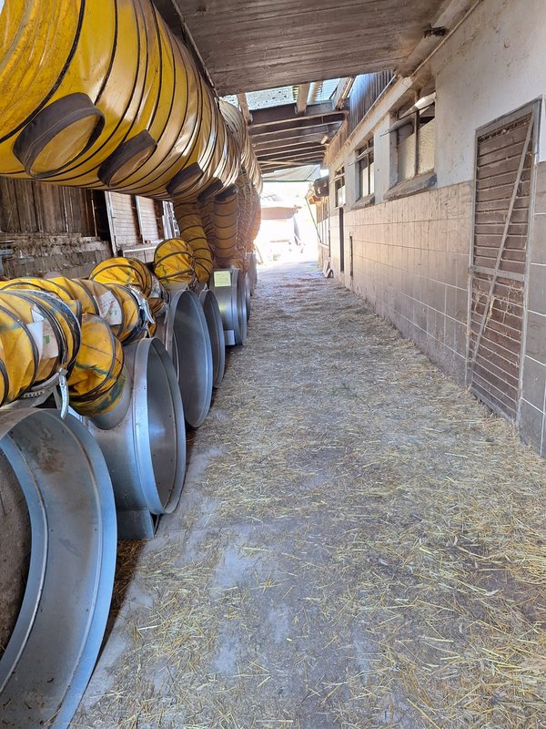 Hygiene ist für gesunde Kälber extrem wichtig – sowohl bei der Fütterung als auch bei der Aufstallung. Wir misten den Liegebereich regelmäßig mit dem Hof-Traktor aus und reinigen ihn mit dem Hochdruckreiniger. Danach wird großzügig mit Stroh eingestreut und die Kälber haben wieder ein „frisches Bett“. Ein besonderes Anliegen war uns außerdem die Luftqualität. Deshalb haben wir in eine Be- und Entlüftungsanlage investiert, die für eine geregelte Luftbewegung und ein gleichmäßiges Stallklima sorgt. Ein wichtiger Schritt, um Atemwegserkrankungen vorzubeugen – das bestätigt uns jeden Tag, dass diese Entscheidung richtig war.