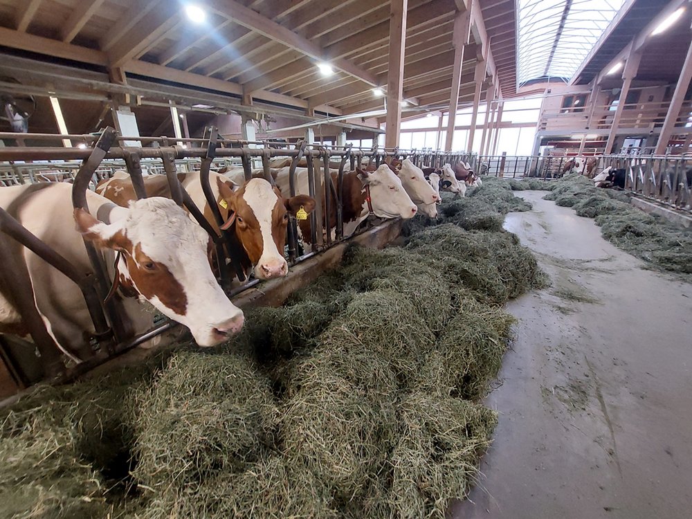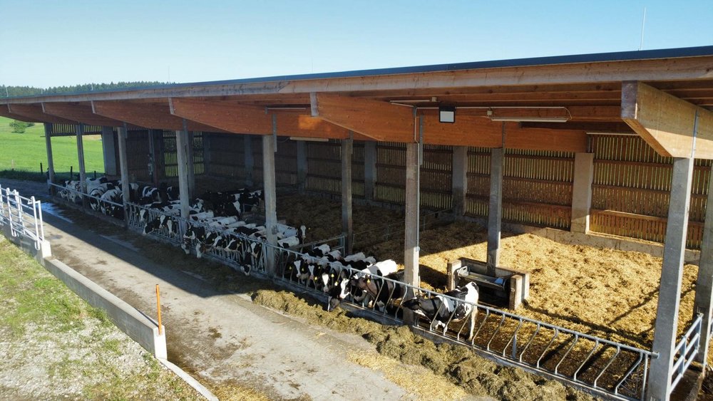 Unser Milchproduktion basiert fast ausschließlich auf hochwertigem Grundfutter. Mit einer hohen Grundfutterleistung und sehr geringem Kraftfuttereinsatz nutzen wir unsere eigenen Ressourcen optimal. Durch eine moderne, energieeffiziente Heubelüftung – betrieben mit eigenem Sonnenstrom – sorgen wir für eine hohe Heuqualität. Und unsere Biodiversitätsflächen liefern zusätzlich wertvolles Futter für Jungvieh und Trockensteher.
