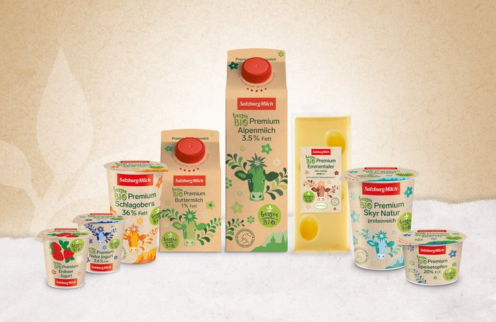 Unter der Marke Bio Premium bietet die SalzburgMilch ein vollständiges Sortiment an: von Milch über Joghurt, Topfen und Rahm bis hin zu Schlagobers und Käse.