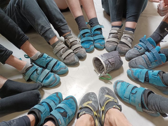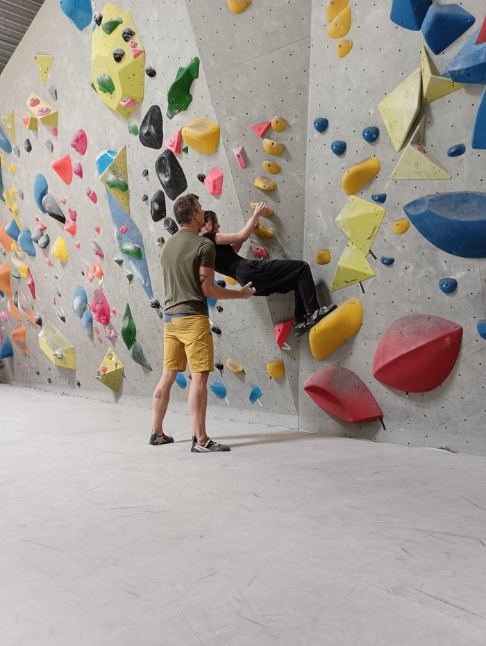 Anschließend gingen wir gemeinsam bouldern. Für alle, die sich darunter nicht so viel vorstellen können: Bouldern ist Klettern ohne Seil, aber keine Panik die Kletterwände sind nur halb so hoch wie bei einer gewöhnlichen Kletterwand. Und falls es doch zu einem Fall kommen sollte, landet man weich auf dicke Matten.