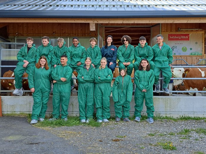 Um die Arbeit, die die Bauern für unsere beliebten SalzburgMilch Produkte leisten, besser verstehen zu können, haben wir Lehrlinge uns früh morgens auf den Weg zu einer unserer Bauernfamilien und deren Betrieb gemacht. Nach einer kurzen Autofahrt sind wir dort auch angekommen.