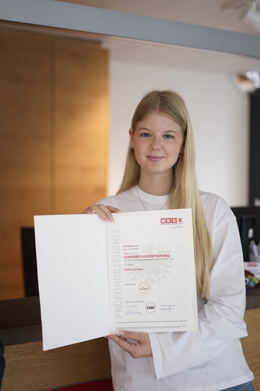 Was mir in der Vorbereitungsphase zur LAP geholfen hat, war dass wir, unsere Ausbilderin bei der SalzburgMilch mehrmals interviewen durften und sie uns alle offenen Fragen, fachlicher, aber auch organisatorischer Art, beantwortet hat. Das hat uns definitiv mehr Sicherheit für die mündliche LAP gegeben. Lisa und ich haben uns von der besten Seite gezeigt und unser Können bzw. Wissen unter Beweis gestellt. Wir beide haben mit Auszeichnung die Lehrabschlussprüfung absolviert. Im Nachhinein kann ich nur sagen, dass ich froh war, mich wirklich gut auf die Schriftliche vorbereitet zu haben. Bei der Mündlichen war es zudem sehr hilfreich, dass ich mir die WKO-Lernzettel angeschaut habe. Wie du lesen kannst, waren meine anfänglichen Befürchtungen umsonst, denn glücklicherweise ist alles sehr positiv für mich ausgegangen. Seit ich die LAP absolviert habe, fühle ich mich sehr erleichtert, ein großer Stein ist mir vom Herzen gefallen. Ich freue mich schon sehr auf die zukünftigen Tätigkeitsbereiche in der HR-Abteilung. Privat werde ich neben der Arbeit noch die Matura absolvieren. Im September beginnt mein zweiter Maturakurs (BWL/ Rechnungswesen) auf den ich mich schon sehr freue.