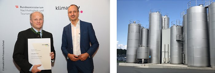 Die bestehende Abwärmenutzung aus der bei der Käseproduktion anfallenden Molke wurde durch Zusammenführung und Schichtung der ursprünglich zwei getrennt geführten Wärme- und Kältespeichertanks optimiert. Zusätzlich wurden zwei Wärmeschichtspeicher mit jeweils 1.000 l Volumen errichtet um die Abwärme der Druckluftkompressoren nutzen zu können. Dieses innovative Projekt wurde sogar mit dem klimaaktiv-Preis im Jahr 2019 ausgezeichnet.