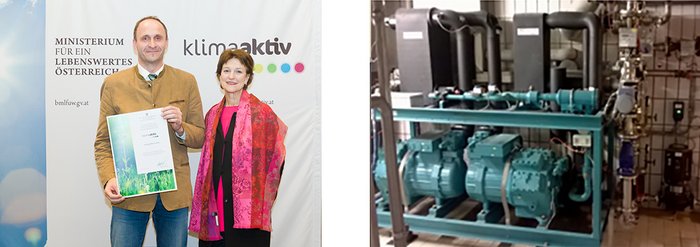 Im Bereich der Sauerrahm- und Joghurterzeugung wird die Milch zu Reifezwecken auf bis zu 45°C aufgewärmt. Die benötigte Energie wird von einem Dampfkessel bereitgestellt und in weiterer Folge über Plattenwärmetauscher übertragen. Im Zuge der Optimierung wurden ein weiterer Plattenwärmetauscher sowie eine effiziente Wärmepumpe installiert. Auch dieses Projekt wurde von klimaaktiv im Jahr 2016 ausgezeichnet.